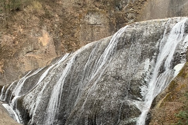 令和8年1月17日 2〜3割凍結 厳しい寒さが続くと、滝全体が真っ白に凍結した「氷瀑(ひょうばく)」を見ることができます。 静寂にて荘厳な凍結の滝、その静かなる美しさを間近でお楽しみください。