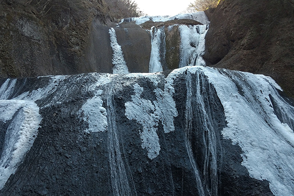令和8年2月12日 3〜4割凍結 厳しい寒さが続くと、滝全体が真っ白に凍結した「氷瀑(ひょうばく)」を見ることができます。 静寂にて荘厳な凍結の滝、その静かなる美しさを間近でお楽しみください。