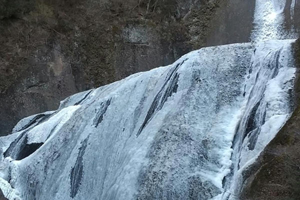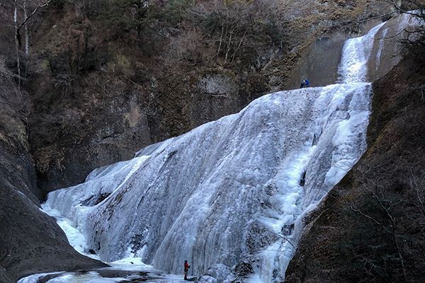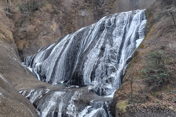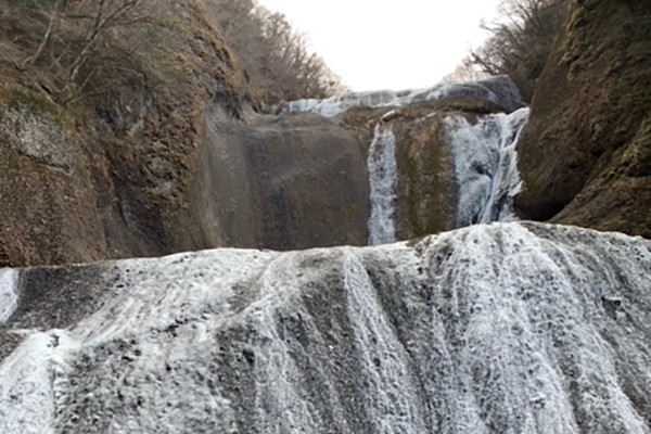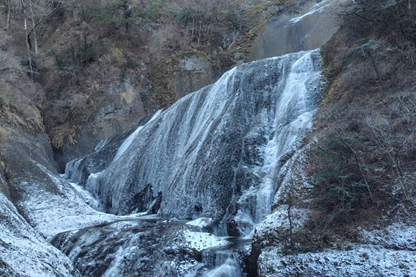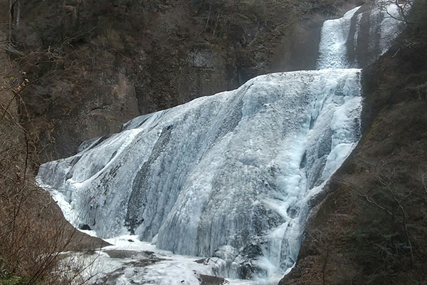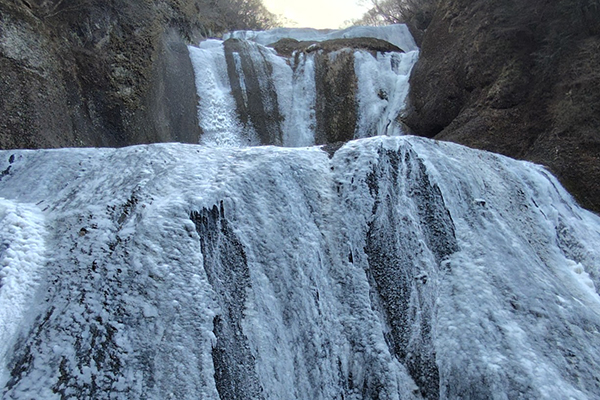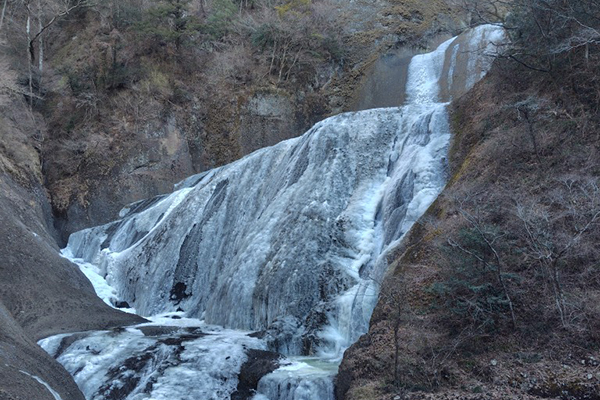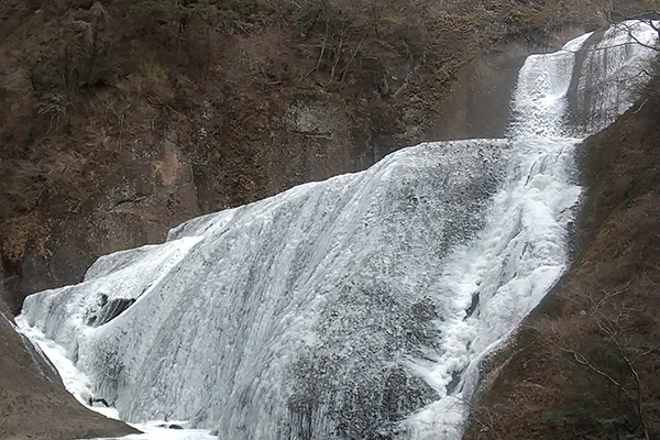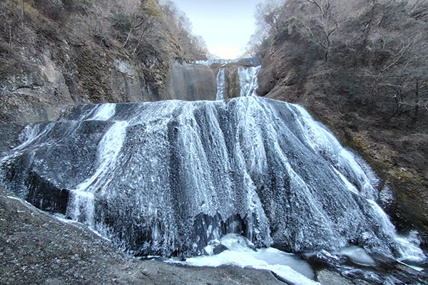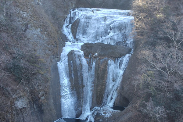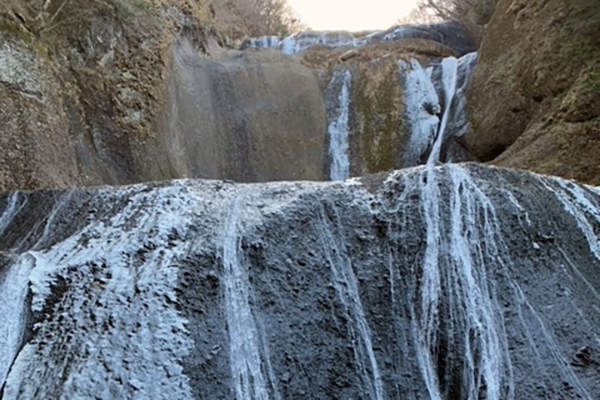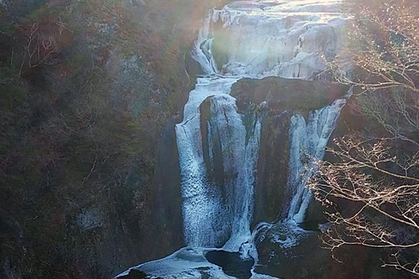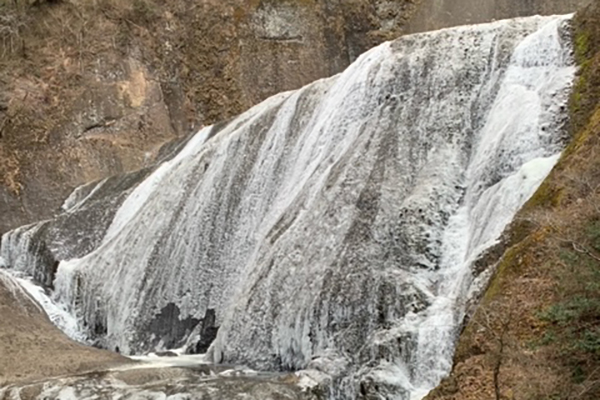 厳しい寒さが続くと、滝全体が真っ白に凍結した「氷瀑(ひょうばく)」を見ることができます。