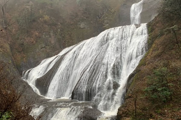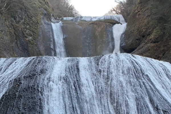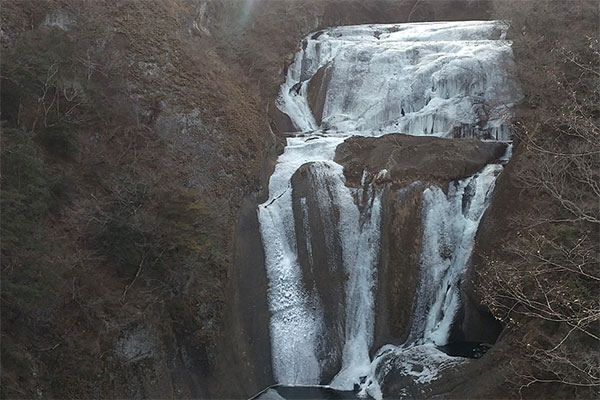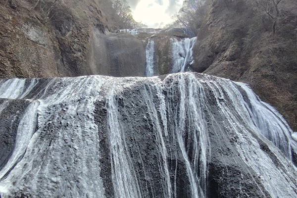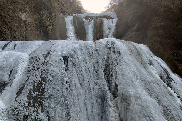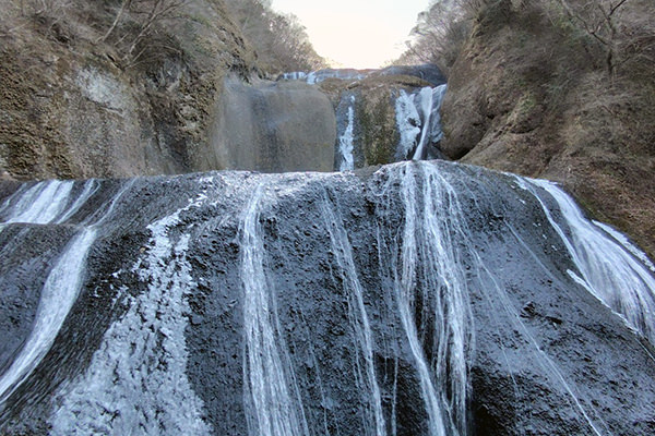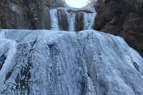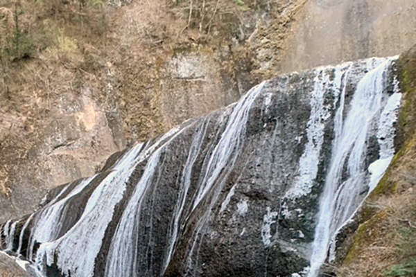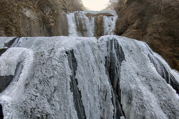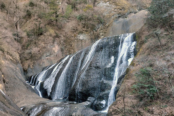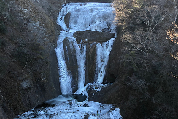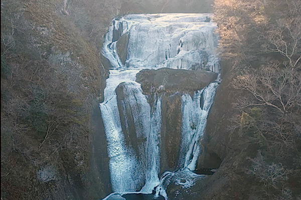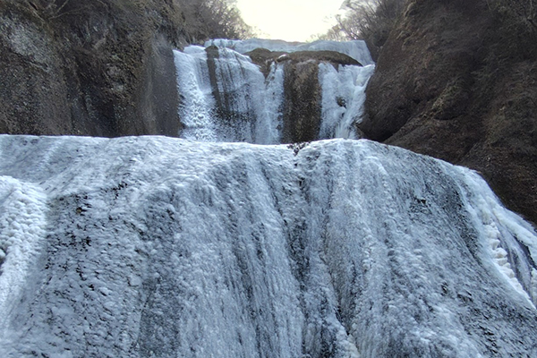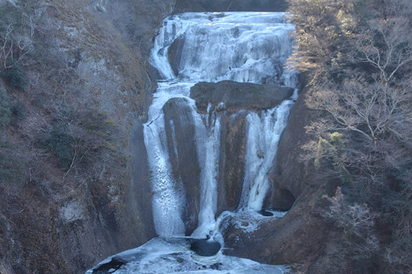 厳しい寒さが続くと、滝全体が真っ白に凍結した「氷瀑(ひょうばく)」を見ることができます。