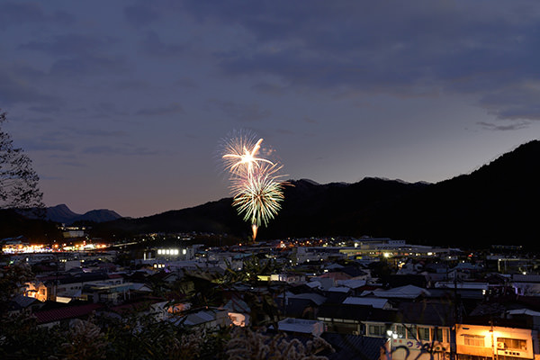 大子町の秋の原風景とともにお楽しみいただく約5分の花火を打ち上げます。