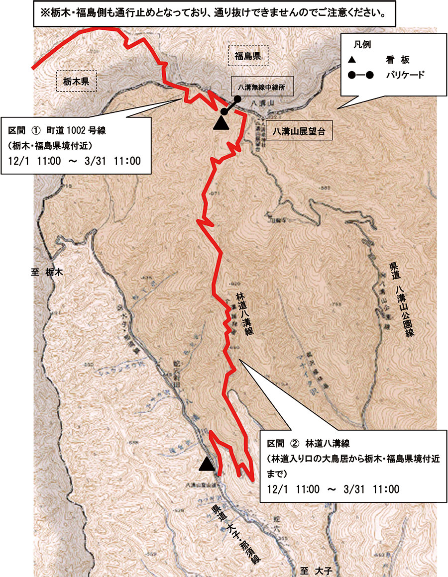 令和7年12月1日 ~ 令和8年3月31日まで - 八溝山線林道 林道入口(大鳥居)~ 栃木・福島県境付近まで